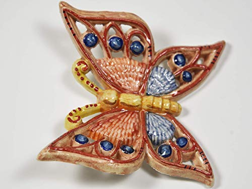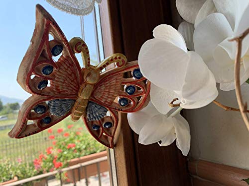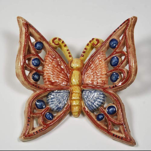 Farfalla media in ceramica traforata rossa e blu