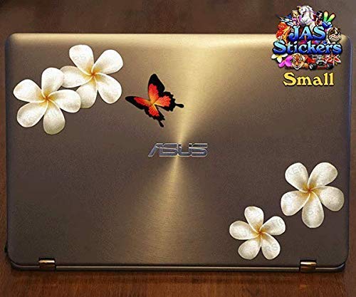 Fiore frangipani plumeria bianca doppio + farfalla adesivi auto autoadesivi - ST00024WT_SML - JAS Stickers
