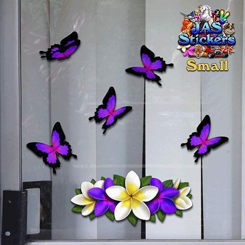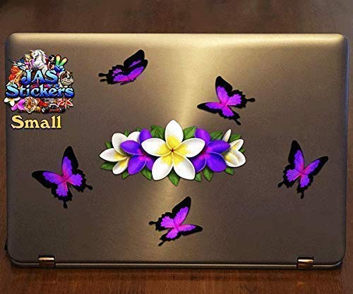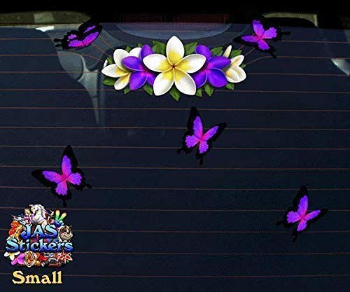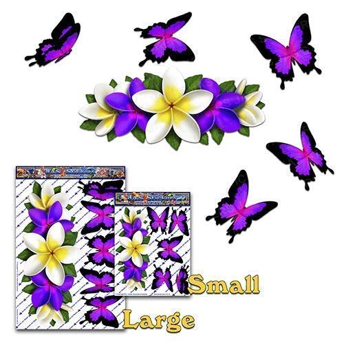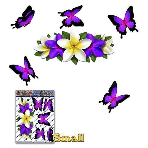 Fiore Viola Frangipani Plumeria Piccolo Grappolo + farfalla adesivo autoadesivo auto - ST00046PL_SML - JAS Stickers