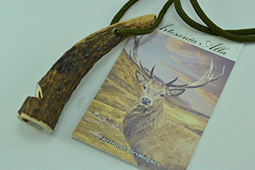 Fischietto punta di un cervo. Il cavo è in nylon. Questi pezzi artigianali sono fatti con le corna di cervo una volta modellati in modo naturale chiamato desmogue. Questo articolo, essendo naturale, può variare leggermente da quello dell'immagine.