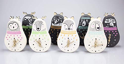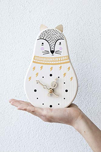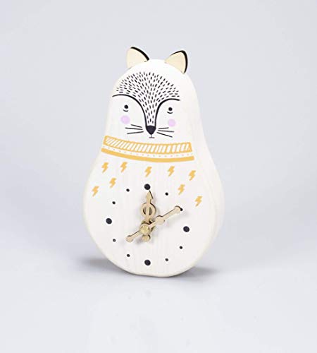 LeonardiWood Orologio Volpe Bianca in legno di Abete rosso massiccio da tavolo/appoggio