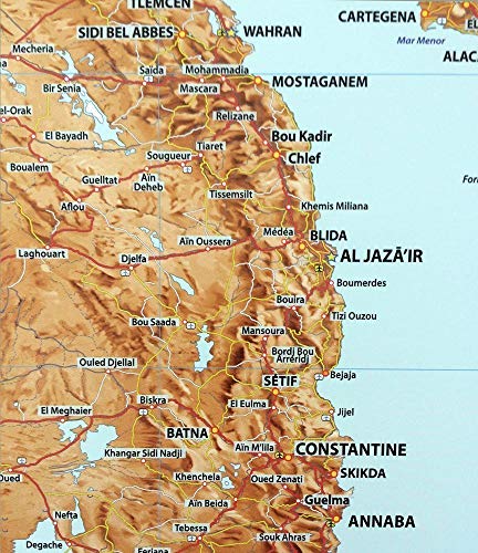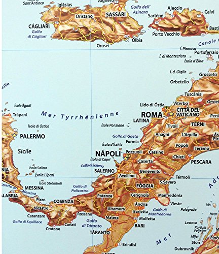 Disegno che rappresenta la regione mediterranea sotto un nuovo orientamento. Rilievi precisi, nomi locali delle città, strade principali. Dimensioni adattate ai telai 50 x 70 cm del mestiere. Lavoro svolto da un artista appassionato delle rappresentazioni del mondo e delle possibilità di diversi punti di vista.