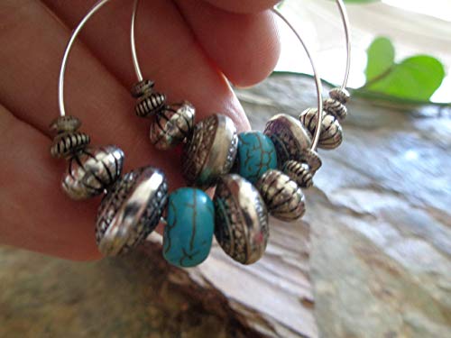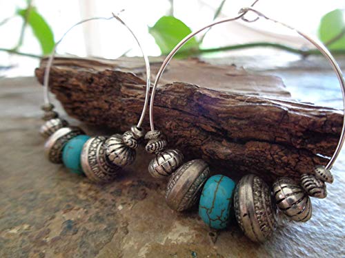Questi orecchini fatti a mano sono fatti di bellissime rondelle in argento antico di argento tibetano e pietre acriliche e turchesi di alta qualità, montate su cerchi argentati. Davvero unico, meravigliosamente leggero e nello stile alla moda di Bali ..... Gli orecchini sono consegnati in sacchetto di organza e sono quindi adatti anche come oggetto da regalo. Dimensioni incluse perline: max. 4 x 3,5 cm