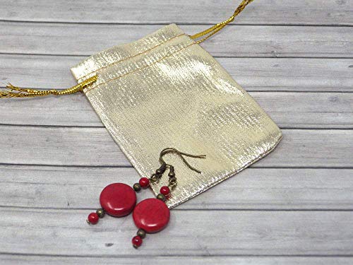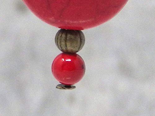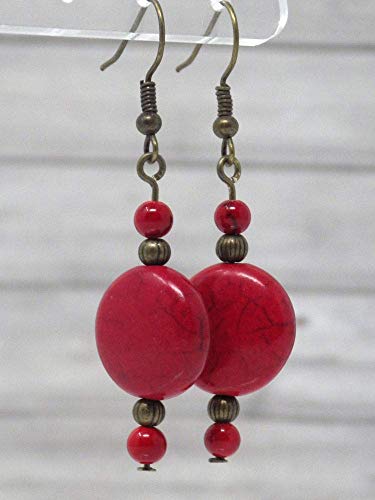 Orecchini rossi stile Zen in bronzo antico e perle piatte in turchese ricostituito