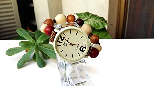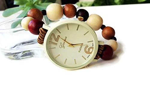 Orologio da polso bracciale elastico con perle legno marrone beige bordeaux Regalo fidanzata donna