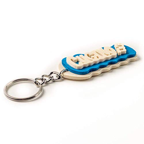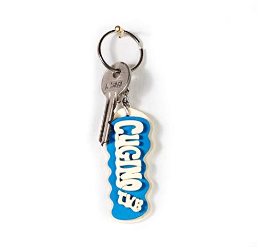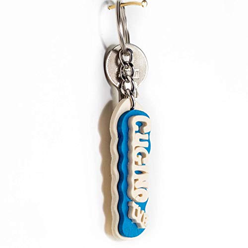 Portachiavi di legno intagliato a mano libera con il traforo con la scritta Cugino TVB, ideale per quella persona che si vuole bene come un fratello, fatto su tre strati di legno colorati e incollati uno sull'altro, sono resistenti e leggeri e non sono ingombranti e hanno una forma che non dà fastidio in tasca. Portachiavi di colore celeste.