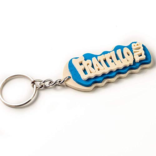 Portachiavi in legno fatto a mano personalizzato con la scritta Fratello TVB, ideale per fare un regalo originale.