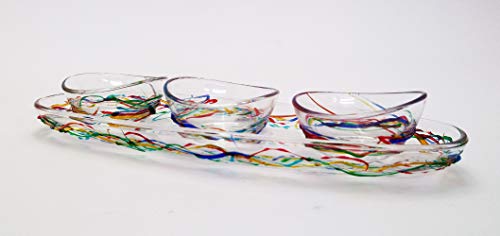 set Papaya 3 salsiere e piattino ovale Jazz multicolore in vetro dipinti a mano Murano Style Venezia