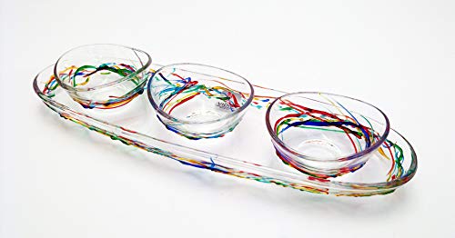 set Papaya 3 salsiere e piattino ovale Jazz multicolore in vetro dipinti a...