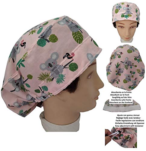 Tappo chirurgico KOALAS, per capelli lunghi, chirurgia, dentista, veterinario, cucina, Asciugamano davanti, vestibilità perfetta e si adatta a tutti i capelli