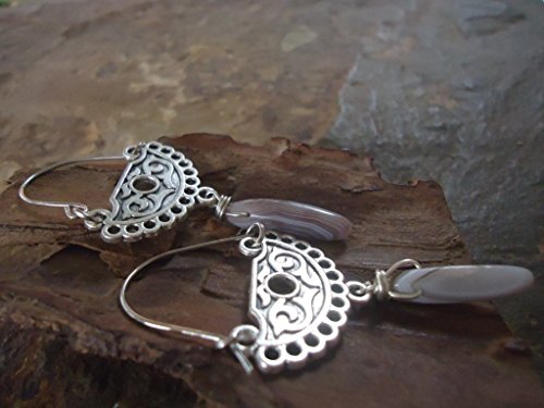 • Questi orecchini con Bohemian modello sono state decorate con un lungo, naturale, pietra screziato e dotato di un extra di chiusura a gancio lungo su un occhiello mobile. Gli orecchini sono indossati lateralmente e sono davvero unico ..... • Di pietra può colorare sempre essere leggermente diversi, alcuni sono beige-marrone, altri più lattiginoso trasparente, altri hanno attraversato grigio-nero. • Gli orecchini sono consegnati nel sacchetto di organza e sono quindi adatti anche come articoli da regalo. • La spedizione della Bolivia a mezzo raccomandata richiede solitamente 14 giorni. • Lunghezza: 6 cm (compreso il gancio misurata) • Larghezza: ca. 3 cm