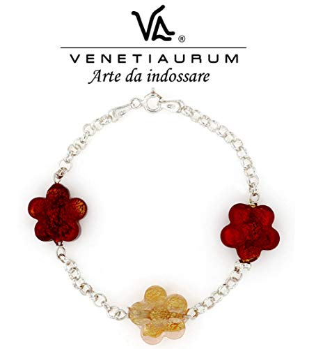 Venetiaurum - Offerta Bracciale donna con perle a forma di fiore in vetro originale di Murano e argento 925 - Gioiello made in Italy certificato