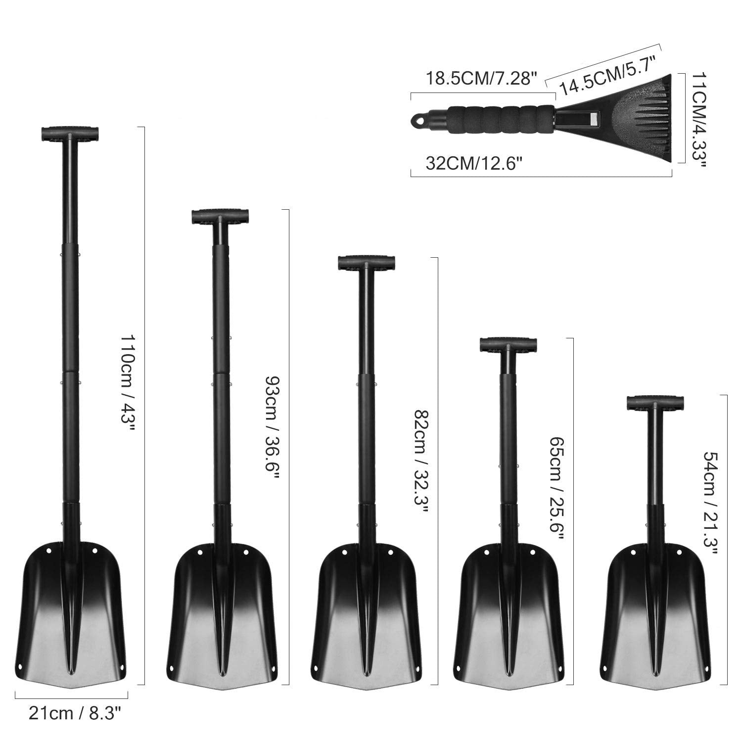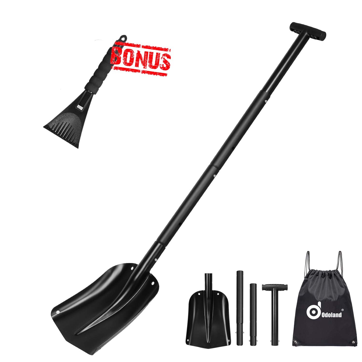 Odoland 110 cm Pala da Neve Kit con Raschietto per Neve per Auto, Vanga da Neve in Lega di Alluminio, 5 Modi per Regolare Lunghezza, Paletta da Neve Staccabile, Leggero e Regolabile