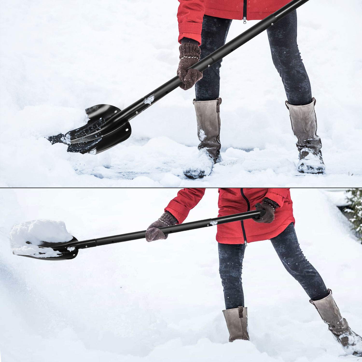 - ❄【PALA DA NEVE RETRATTILE】: Le dimensioni della mini pala da neve pieghevole misurano 54 cm e la lunghezza massima può essere raggiunta fino a 110 cm. In questo modo, puoi ancora finire il lavoro di spalare la neve senza bisogno di chinarsi.