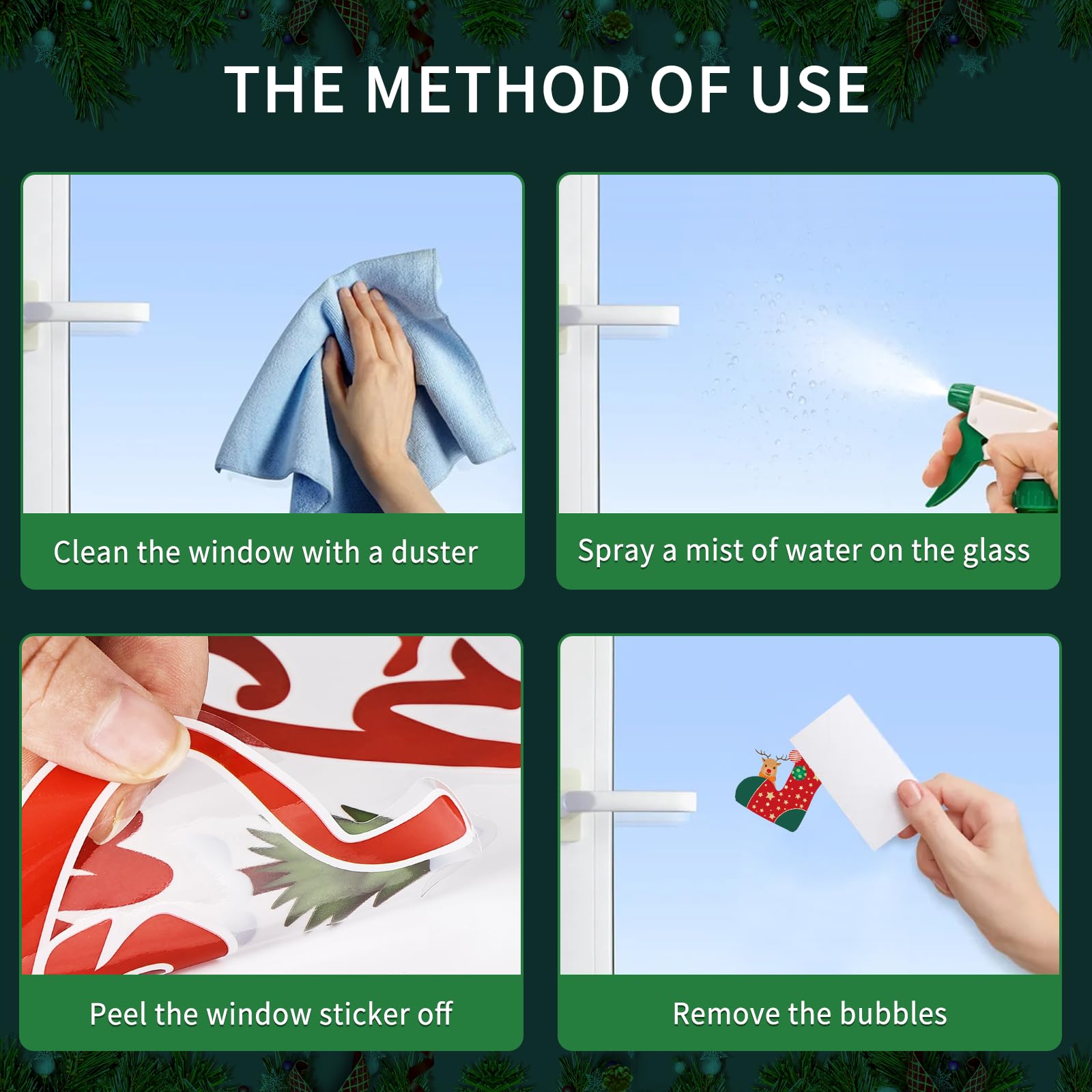 - 【Nessuna colla e facile da abbattere】: la finestra Christmas Christmas è responsabile per elettricità statica sul vetro. Non può solo essere facilmente incollato e privo di residui, ma anche riutilizzato.
