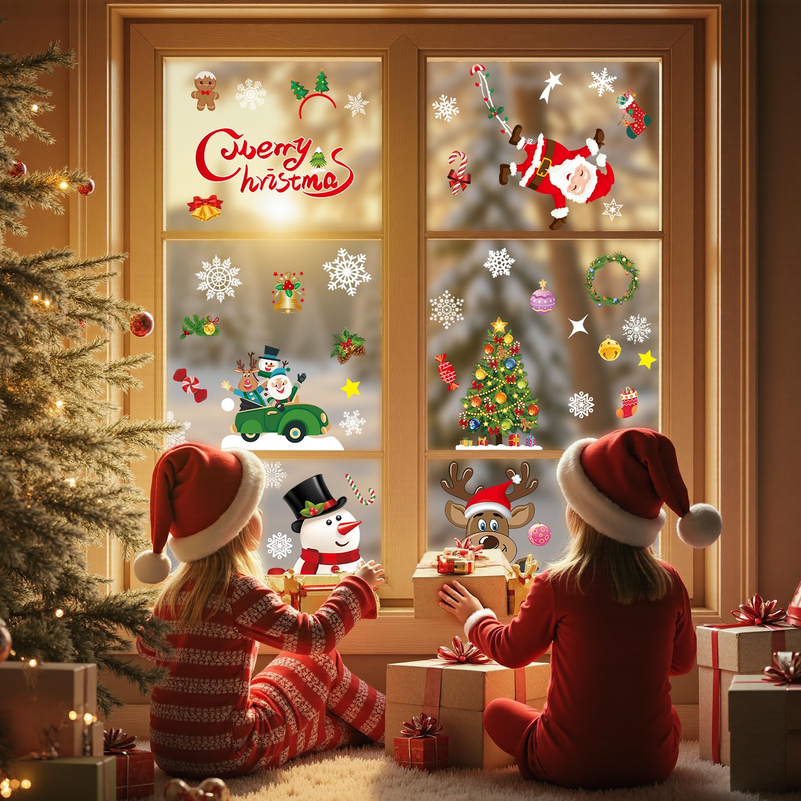 - 【Bellissimo set di sticker natalizio】: gli adesivi per la finestra di Natale sono popolari con i bambini, può creare un'atmosfera di Natale calda e bella. Quindi inizia la decorazione fai da te per Natale.
