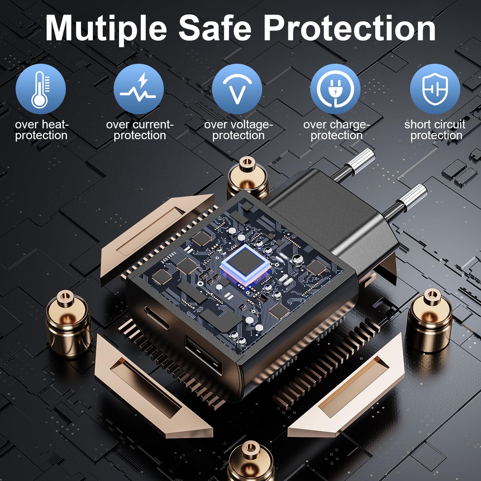 - 【Veloce Caricatore USB C】Viene fornito con protezioni premium e tecnologia intelligente di identificazione IC, questo presa usb c caricatore previene danni causati da corto circuits,overcurrent,overvoltage e problemi di sovrariscaldamento. Il caricabatterie veloce tipo c smette di caricare automaticamente quando la capacità della batteria è piena, garantire la sicurezza, la longevità del dispositivo e utilizzato per molto tempo.