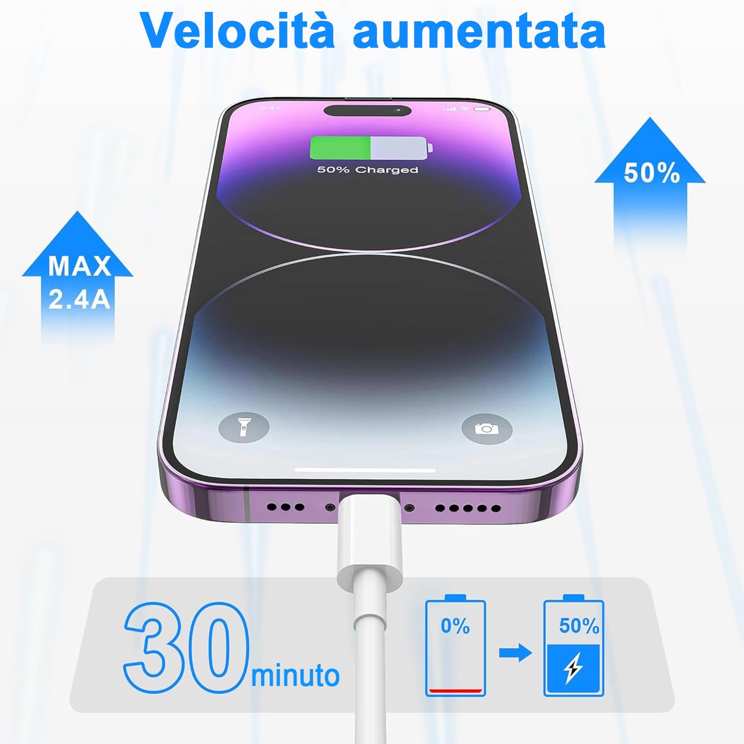 - 【Ricarica rapida e sincronizzazione】Il cavo di ricarica for iPhone è dotato della più recente Lightning, progettata for un'alimentazione rapida. Si ricarica più velocemente dei normali cavi Lightning. La velocità di trasferimento dei dati è fino a 480 Mbps e supporta la ricarica rapida a 3A.