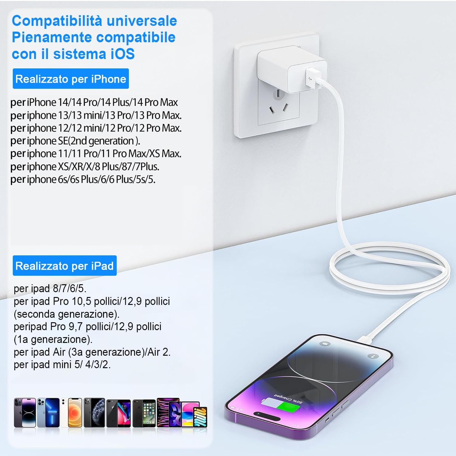 - 【Robusto e Durevole】Il nostro cavo da USB a Lightning è realizzato in materiale di alta qualità, durevole e resistente all'usura. Non è necessario preoccuparsi di sostituirli spesso. Inoltre, il design del cavo di colore bianco si abbina perfettamente a qualsiasi dispositivo.