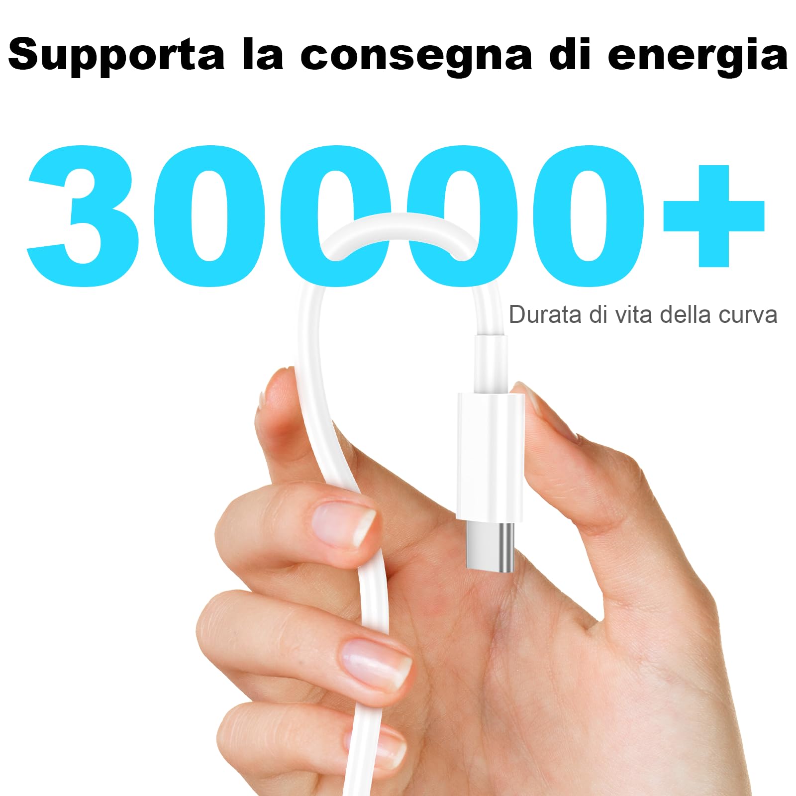 - 【Resistente e resistente all'usura】Il 60W cavo usb type-c, oltre ad essere morbido e resistente all'usura, può resistere a oltre 30000+ test di piegatura senza rompersi o aggrovigliarsi vicino al connettore, senza causare danni, non è necessario preoccuparsi di sostituire frequentemente il cavo ricarica rapida type c. Inoltre, il design del cavo bianco si adatta perfettamente a qualsiasi dispositivo.