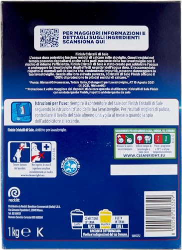 Finish Cristalli di Sale, 1 kg di Sale per Lavastoviglie, Additivo Lavastovigle contro l'Accumulo di Calcare
