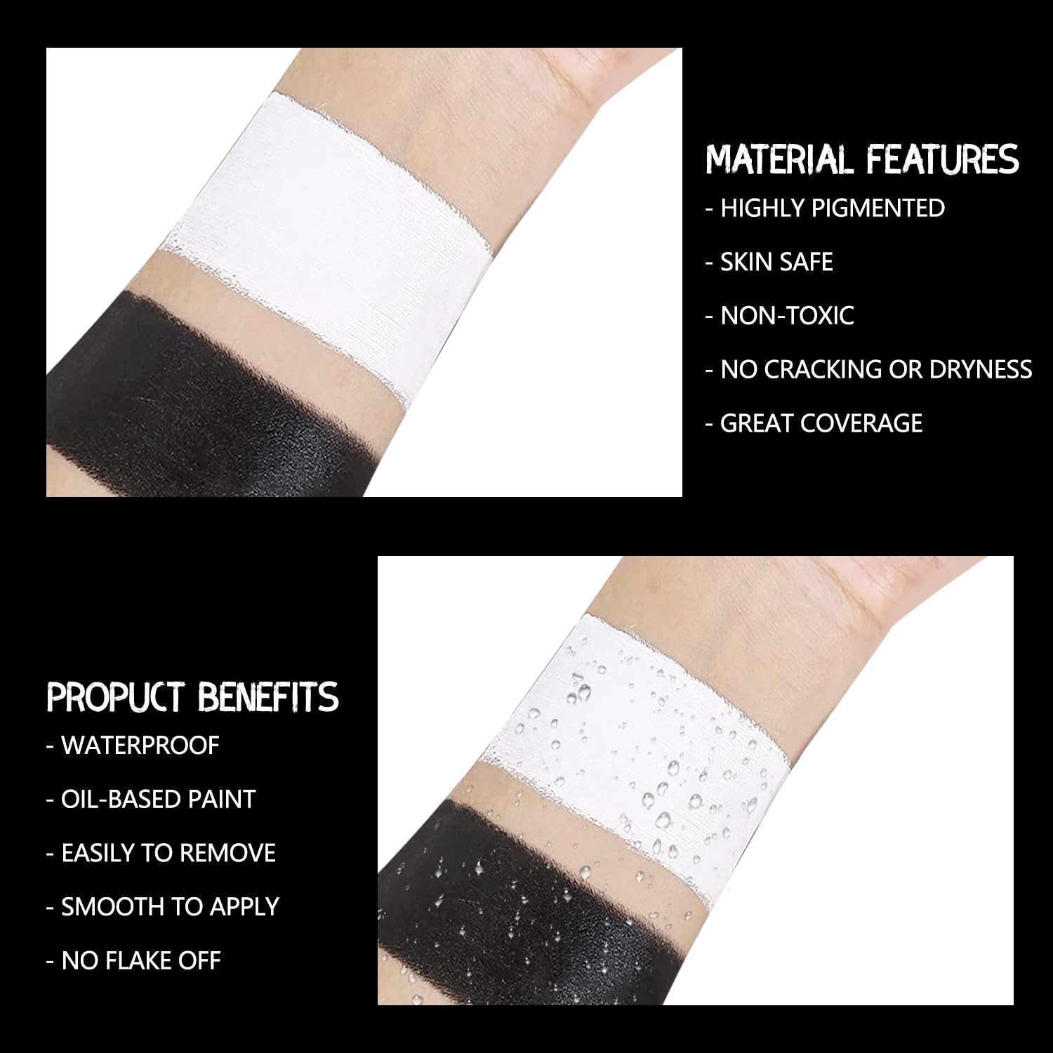 - ✅ TRUCCO HALLOWEEN IN BIANCO E NERO - Il set trucco per bambini Halloween può essere utilizzato direttamente o mescolato con altri colori per creare diversi colori che ti piacciono, perfetti per la pittura del corpo e del viso.