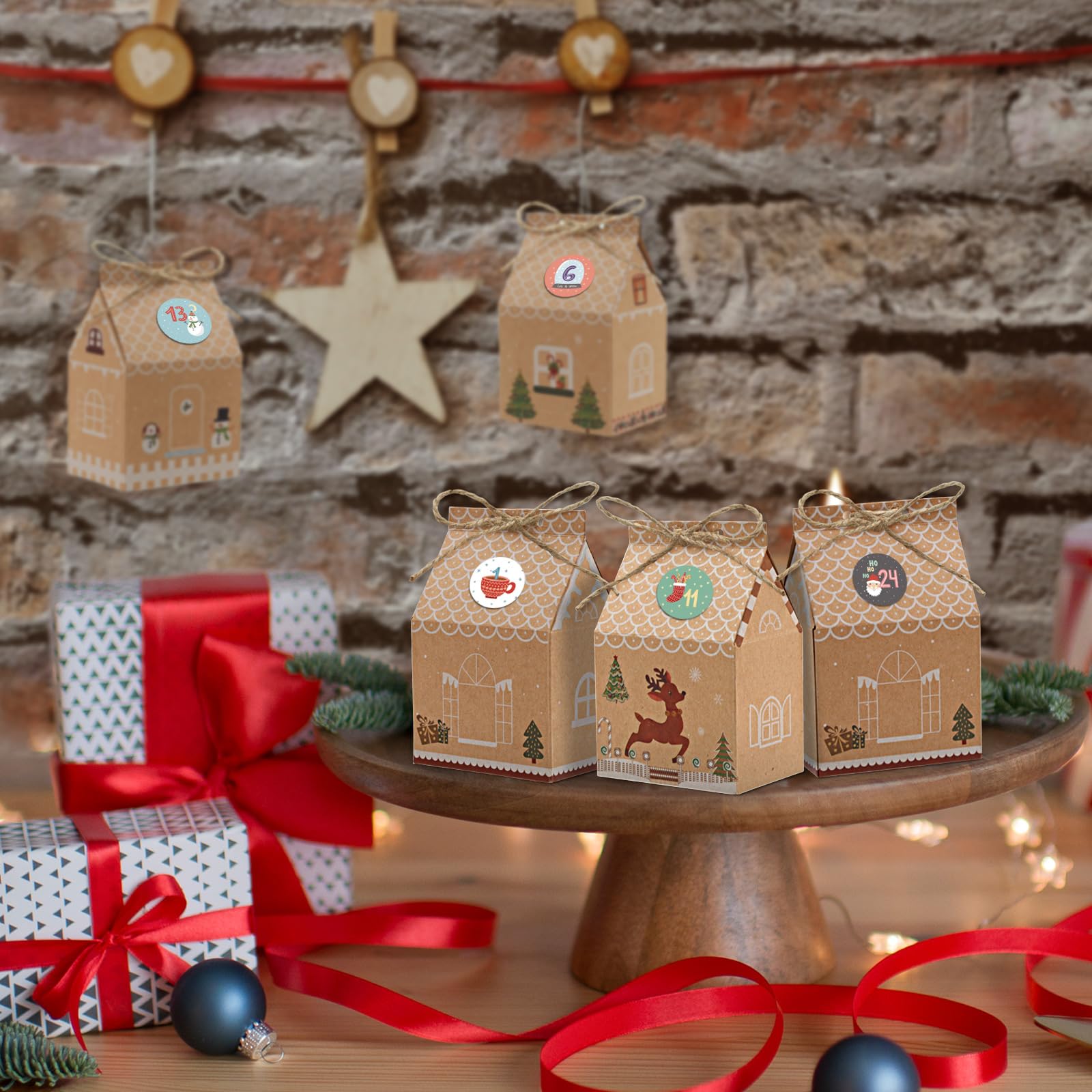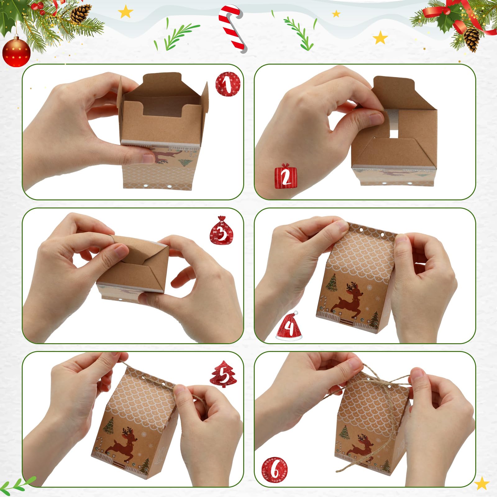 - 🎁Kit Fai da Te per Calendario Avvento🎁include 24 scatole kraft, adesivi e spago di iuta, perfetti per creare sorprese natalizie.