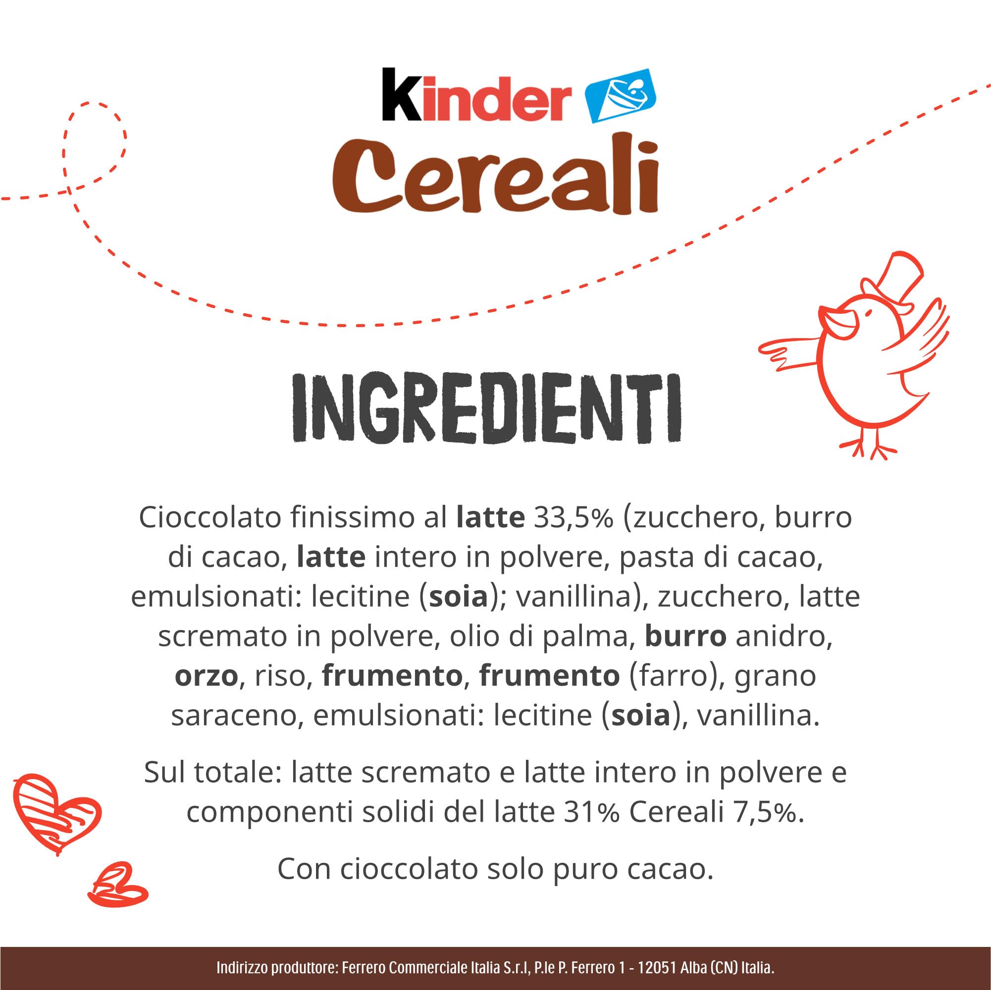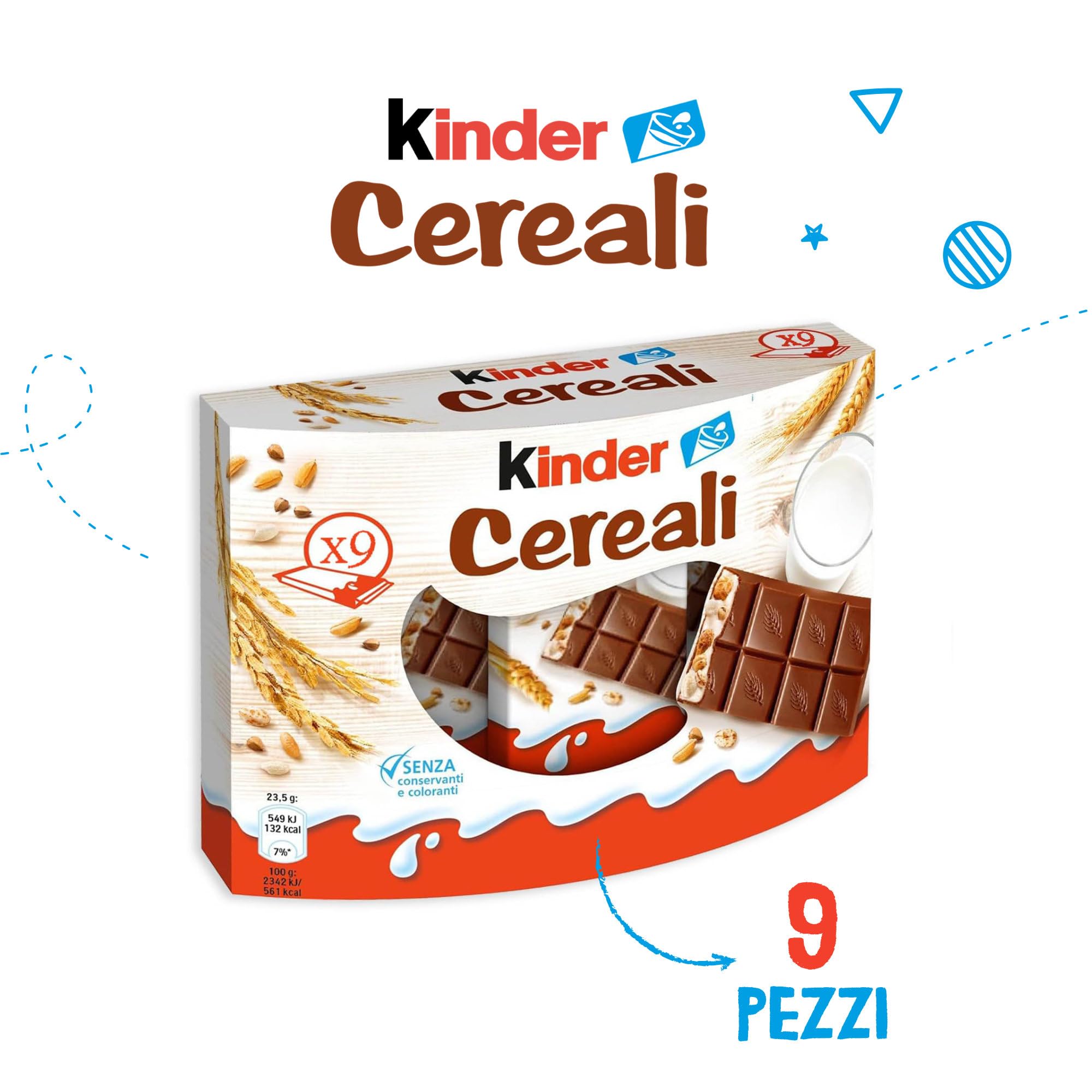 • KINDER CEREALI: lo snack dal gusto unico che unisce la golosità del cioccolato Kinder alla semplice croccantezza dei 5 cereali, per un dolce momento di pausa