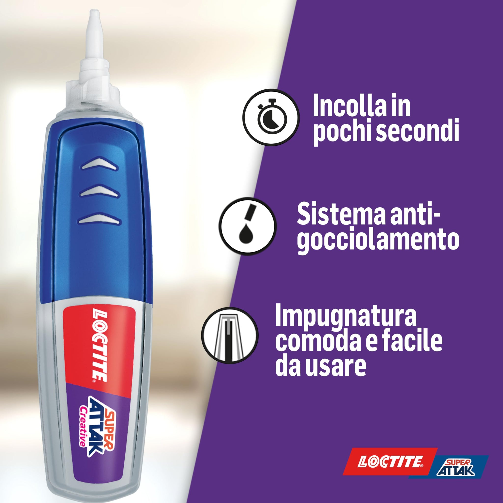 - Contenuto – Loctite Super Attak Creative, colla con composizione cianoacrilato in gel, colla modellismo con comodo applicatore a penna, colla trasparente, 1x3g tubetto