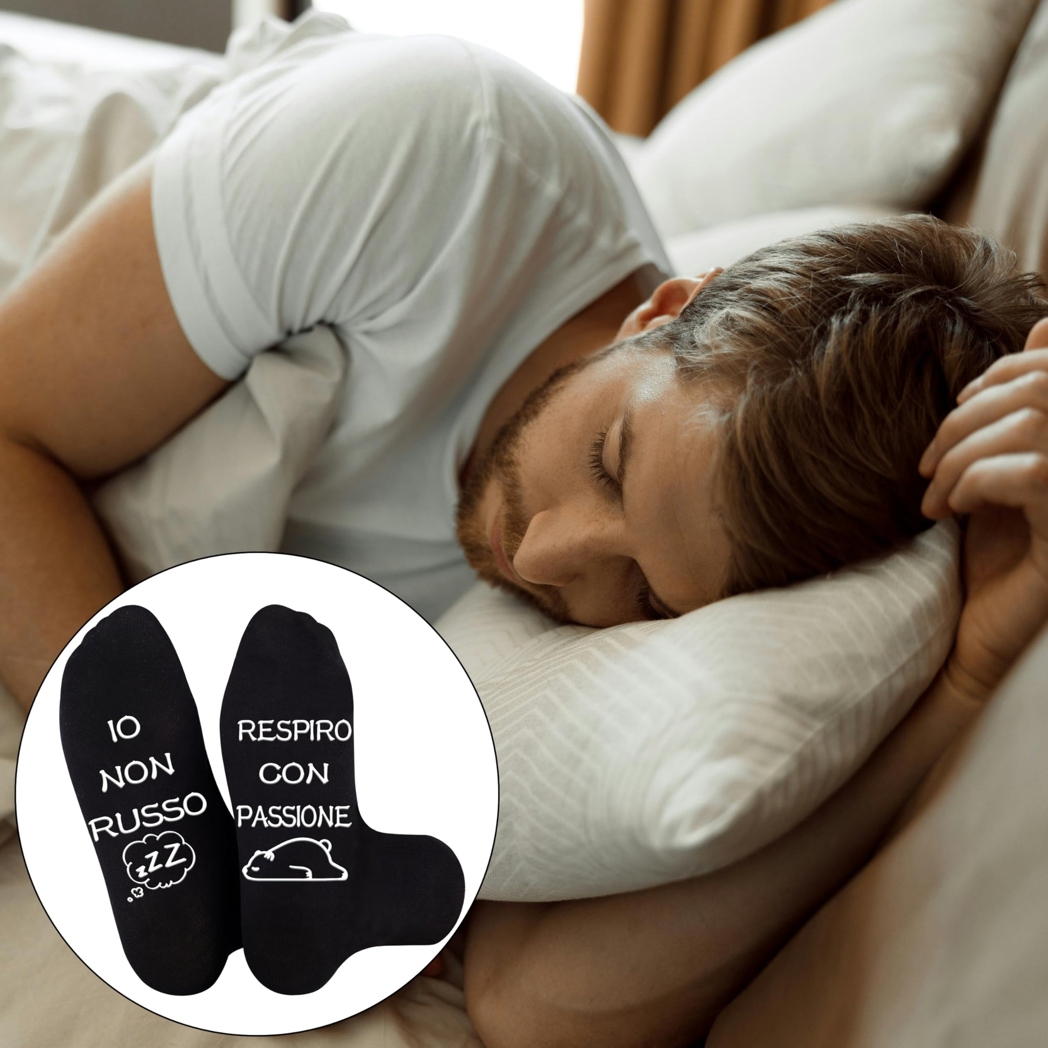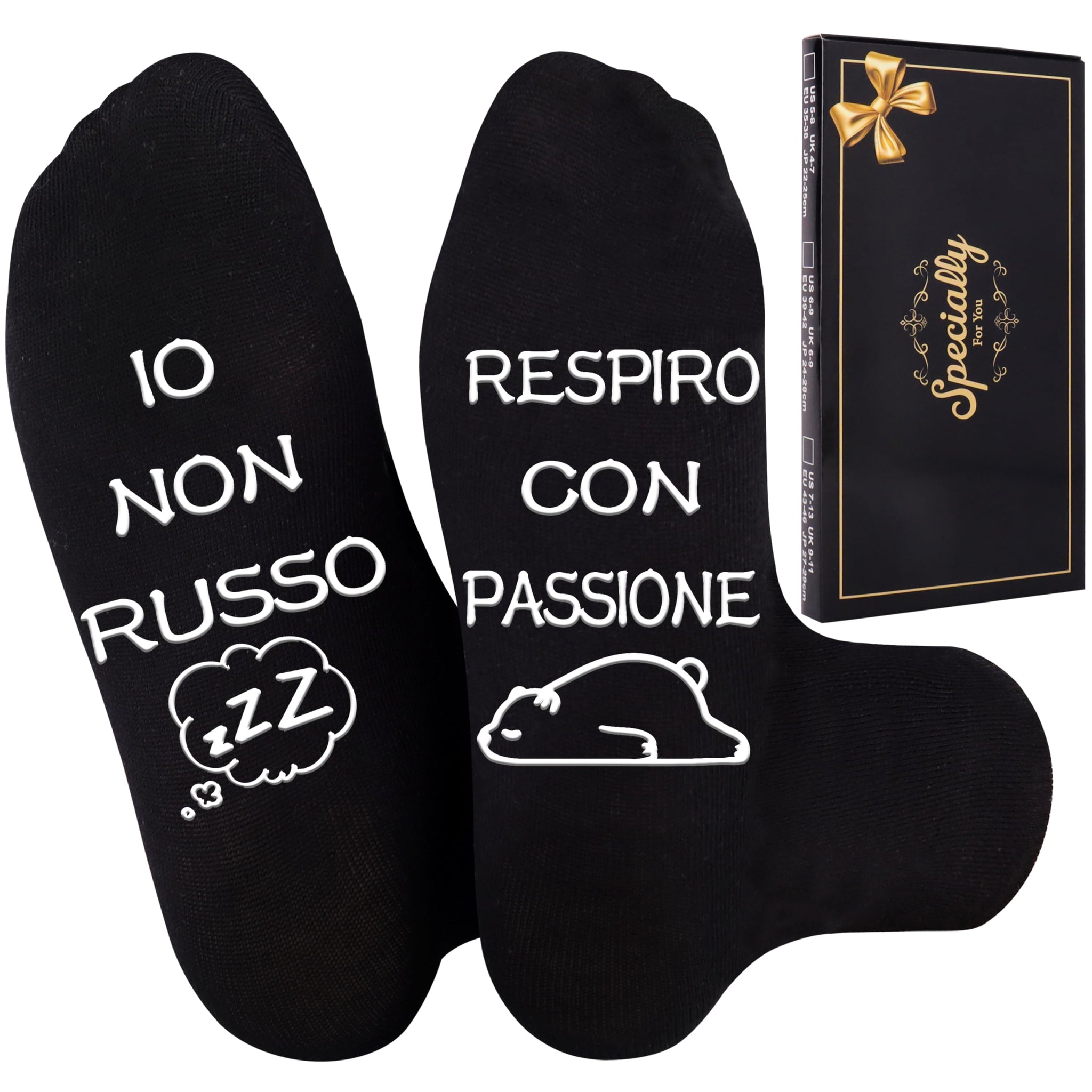 • 【Design creativo】Il testo sul fondo dei calzini recita: IO NON RUSSO RESPIRO CON PASSIONE. C'è anche un orso che dorme sulla pancia per rendere questo calzino ancora più interessante.