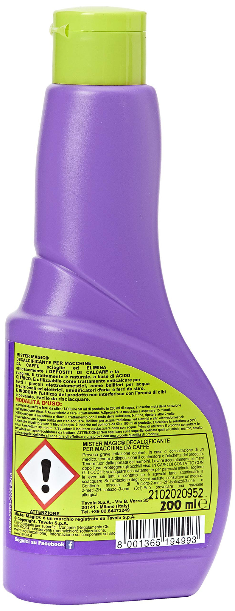 Mister Magic - Decalcificante Macchinetta caffè, Trattamento Anticalcare per Piccoli Elettrodomestici, Biodegradabile al 98%, 200 ml