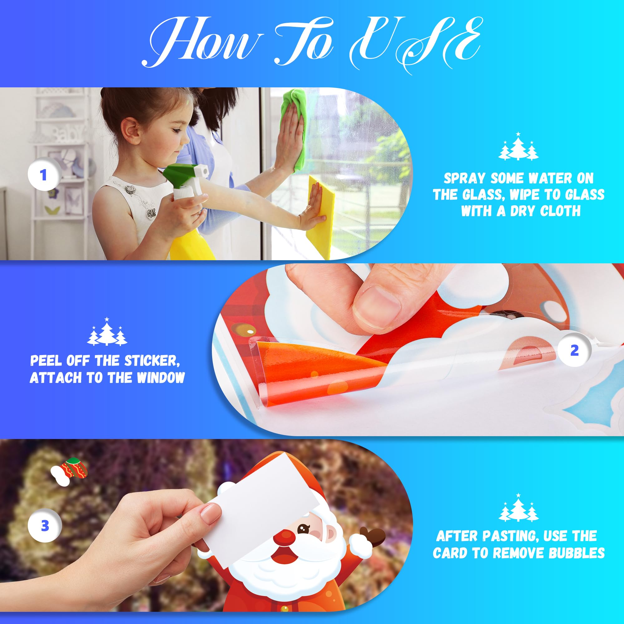 • 🔔【Garanzia di Servizio Post-Vendita al 100%】Se hai qualche problema con le vetrofanie natalizie o non sei soddisfatto delle nostre vetrofanie natale, puoi contattarci e ce ne occuperemo al più presto.