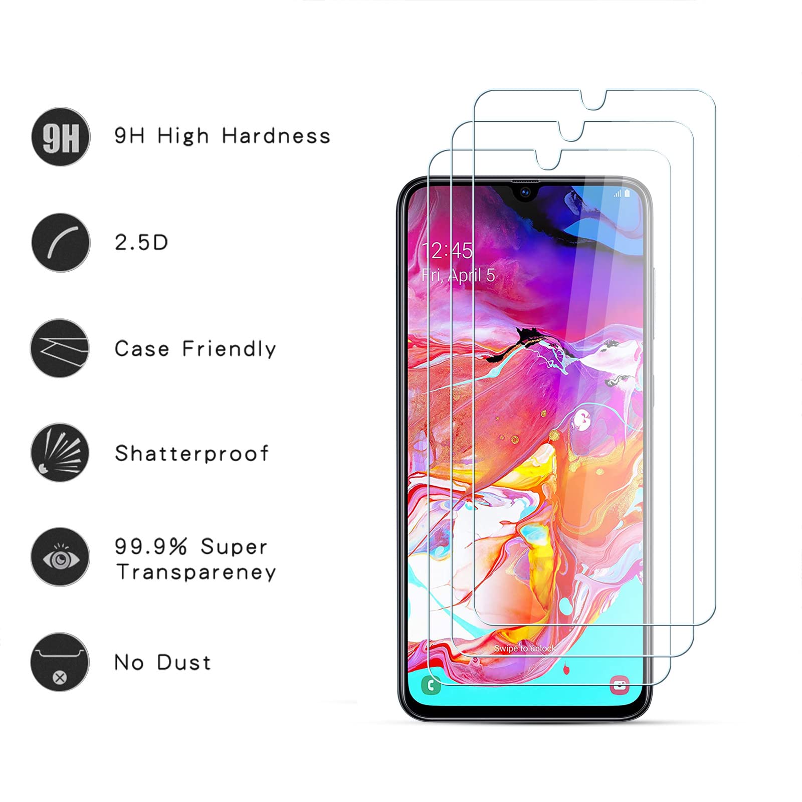 Dettagli: Pellicola Protettiva in Vetro Temperato per Samsung Galaxy A70 [3 Pezzi], Durezza 9H, 2.5D Alta Definizione, Senza Bolle, Anti Graffio Screen Protector per Samsung Galaxy A70