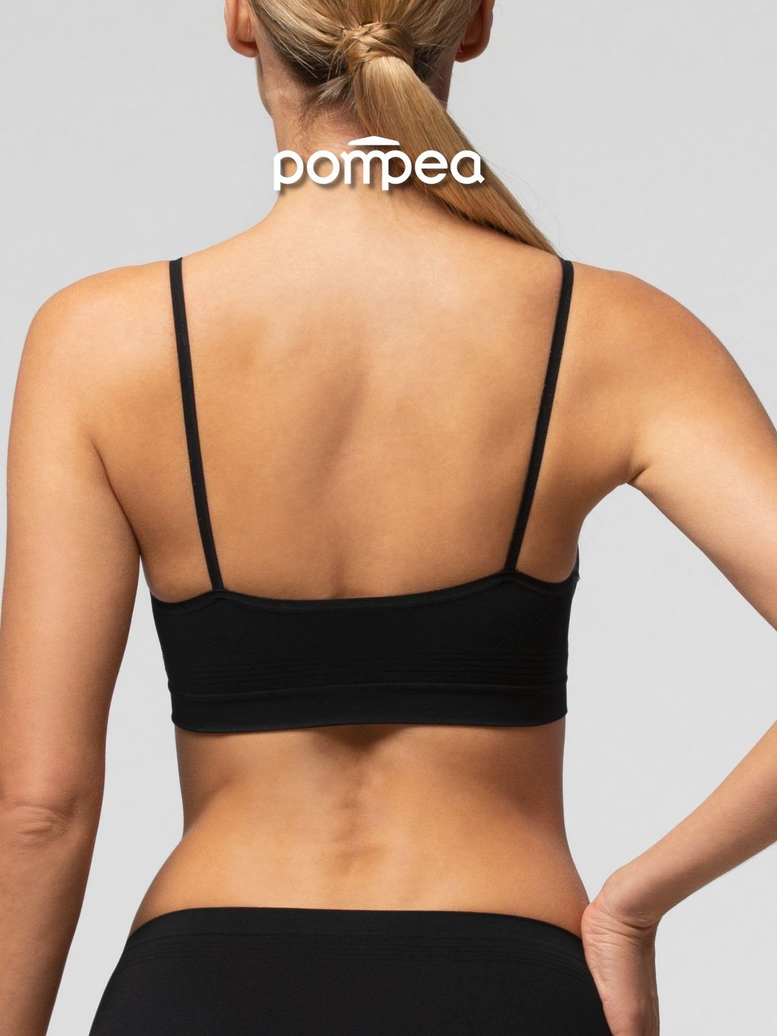 Reggiseno donna seamless senza ferretto. Brassiere spalla stretta in morbida microfibra senza cuciture, con finiture piatte e zone anatomiche e funzionali, realizzato in filato odor control Q-SKIN® by Fulgar. La fascia elasticizzata in fibra LYCRA® dona una vestibilità unica e confortevole. Ideale per l’attività quotidiana come una vera e propria seconda pelle. Il capo si lava e asciuga velocemente, senza l’obbligo di stiro. Leader nell'intimo e nella calzetteria, Pompea guarda al futuro con occhio sostenibile, per diventare punto di riferimento del nuovo comfortwear di tendenza