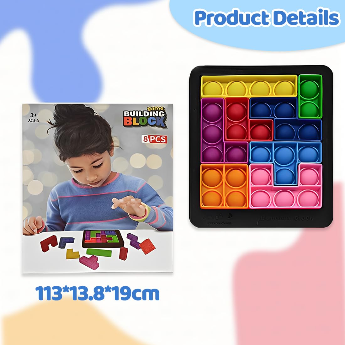 - [Giocattoli di alta qualità]fidget toys È un gioco divertente ed educativo che consiste in 8 colorati puzzle geometrici in silicone e un vassoio. Allena la capacità di apprendimento, la capacità di pensiero, il pensiero logico e il calcolo fine del bambino attraverso diversi colori, numeri, forme e modelli.