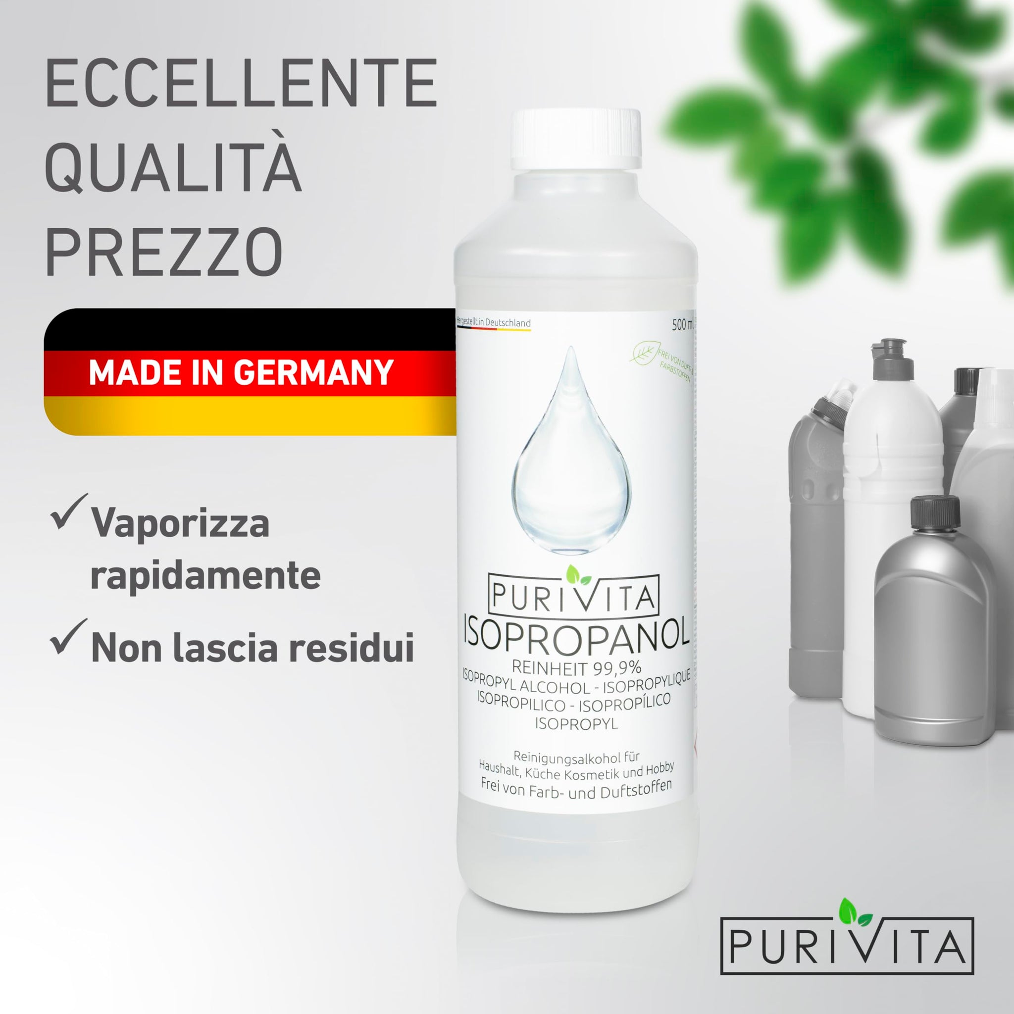 • π€π…π…πˆπƒπ€π“π„π•πˆ 𝐀𝐋𝐋𝐀 ππ”π€π‹πˆπ“Γ€ π’π”ππ„π‘πˆπŽπ‘π„: Fidatevi dell'alta qualitΓ  di Purivita Isopropanol. Senza additivi, prodotto secondo gli elevati standard in Germania. confezione individuale di alcool isopropilico da 500 ml