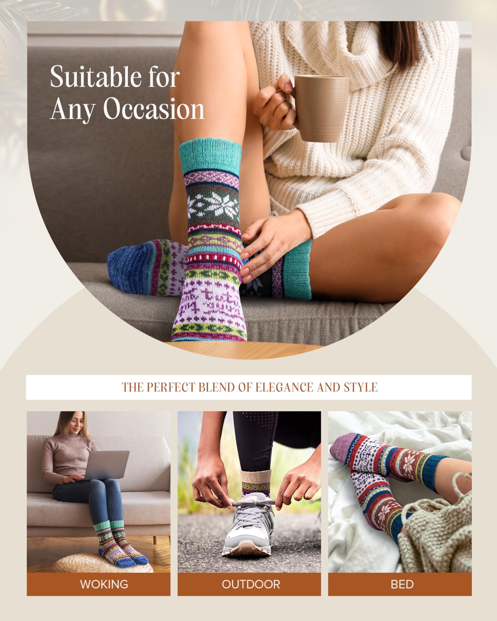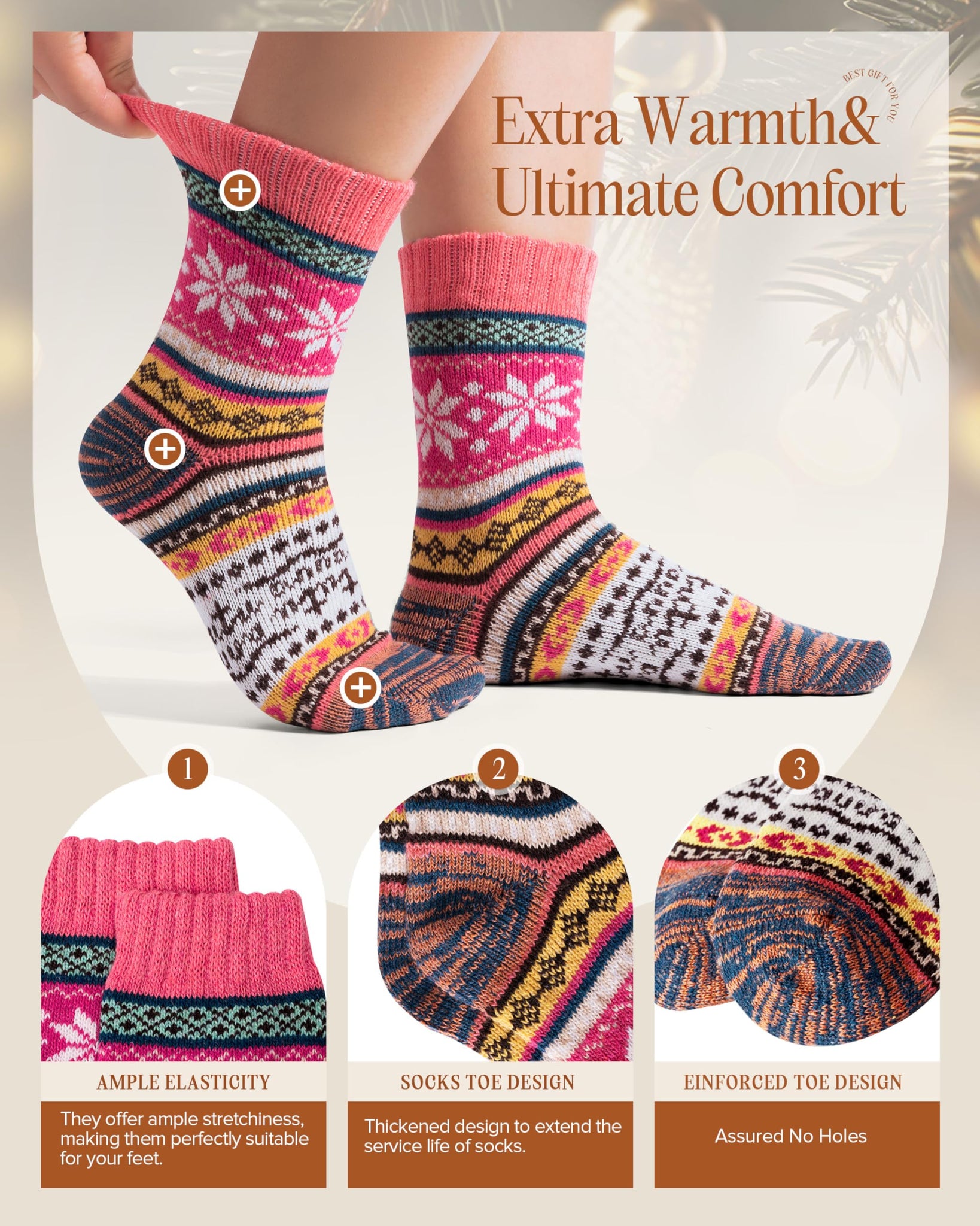 - Moda e stile versatile: Queste calze donna invernali combinano design colorati e righe vintage con funzionalità moderna, rendendo ogni calza invernale adatta a outfit casual o eleganti. Perfette come calze natalizi donna, regalini Natale donna o calzini donna invernali, mantengono i piedi caldi a casa, in ufficio, per passeggiate o escursioni, aggiungendo stile, comfort e divertimento a ogni occasione