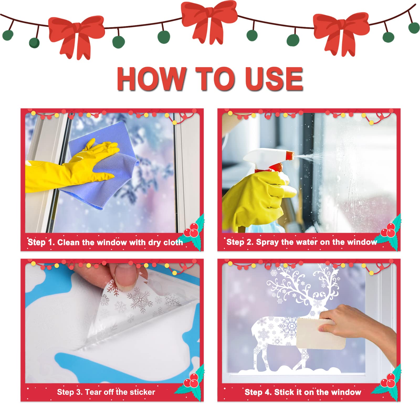 - Design della personalità a doppia faccia: il nostro adesivo di Natale è un adesivo elettrostatico a doppia faccia. Quando incolli l'adesivo sulla finestra, avrà lo stesso colore all'interno e all'esterno, entrambi i lati con un bel colore.