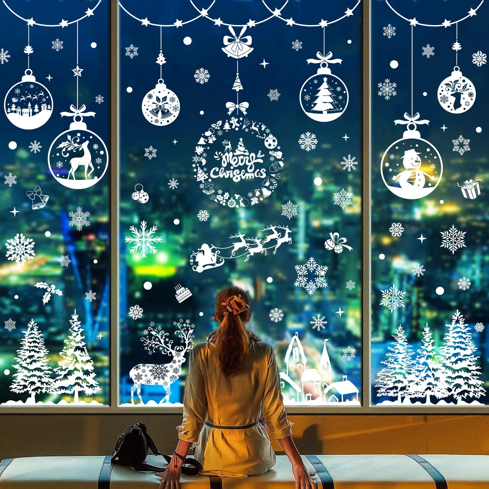 - Ampiamente usato: la decorazione natalizia riutilizzabile dell'adesivo di Windows è ampiamente utilizzata, può essere applicata su qualsiasi superficie liscia, pulita e asciutta, porte, frigoriferi, pareti, specchi, negozi, ecc. Ideale per decorare le finestre di casa, negozi, caffè o lavoro, dona un'atmosfera festosa.