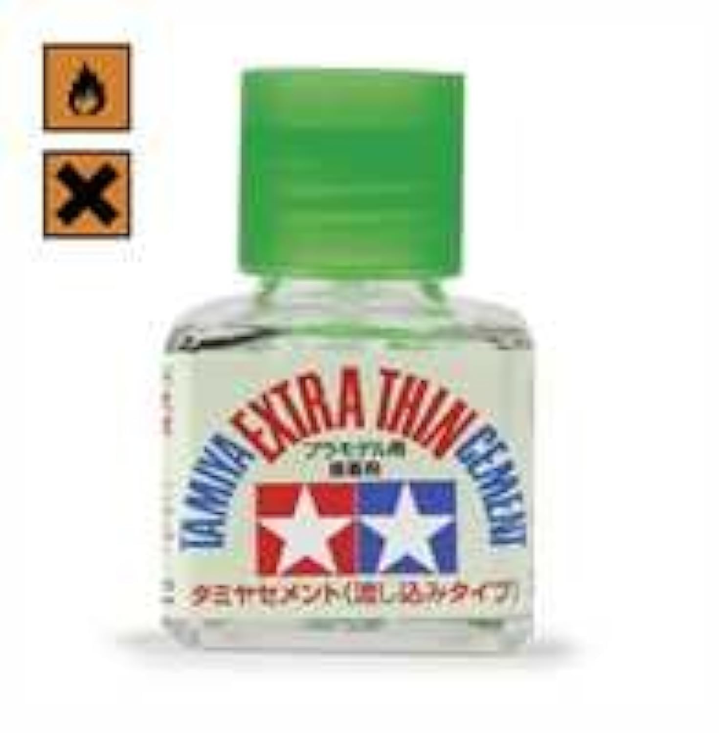 Extra Thin Cement 40ml Colla Extra Liquido con Pennello applicatore E' molto pi fluido del tipico Tamiya Cement: scorre per capillarit in solchi, interstizi e piccoli spazi vuoti delle parti da incollare; inoltre asciuga prima. Si applica con il pennellino incluso nel tappo.