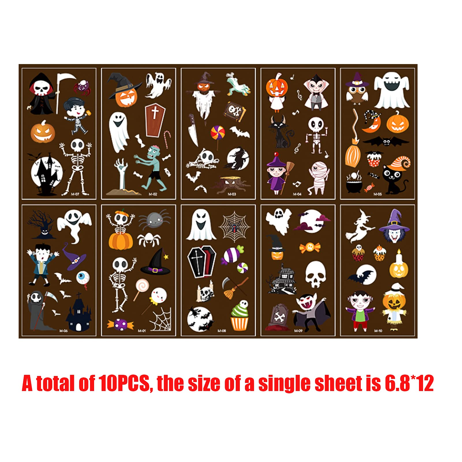 Dettagli: Tatuaggi di Halloween per bambini, 10 fogli Tatuaggi temporanei di Halloween, Tatuaggi temporanei di Halloween per bambini, Adesivo luminoso impermeabile Decorazioni di Halloween