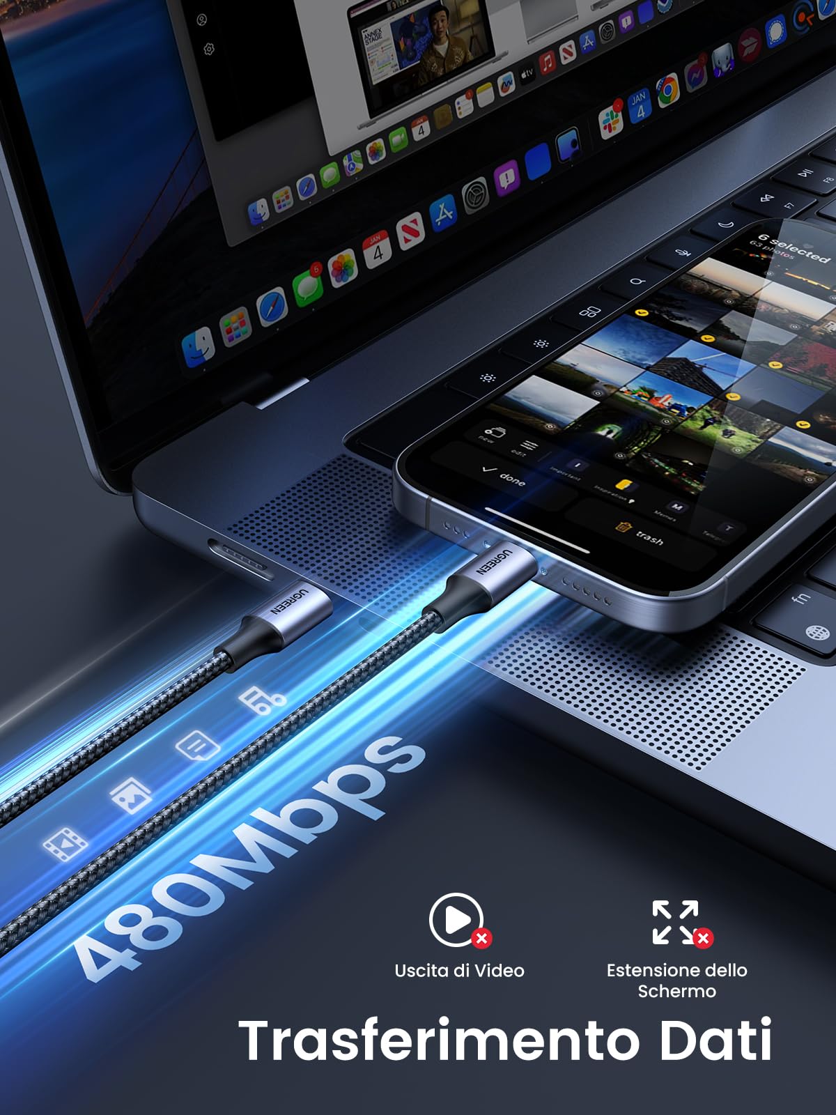 - [Ampia Compatibilità] UGREEN Cavo USB C ricarica rapida compatibile con quasi tutti i dispositivi con porta USB-C, come iPhone 17/ iPhone 17 Air/ iPhone 17 Pro/ iPhone 17 Pro Max/iPhone 16/16 Plus/16 Pro/16 Pro Max/15/15 Plus/15 Pro/15 Pro Max, MacBook Pro 2023/2022, iPad Pro 2024/2023, iPad Air 2024, Galaxy S25/S25+/S25 Ultra/S24/S23/S22/S21/S20/S10/A53, Pixel 10/10 Pro/10 Pro XL/9/8, Steam Deck, ecc.