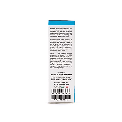 Dettagli: Descrizione Gocce oculari con sodio ialuronato ed aloe vera, coadiuvante nel trattamento dell'occhio secco. Lubrificazione ed idratazione degli occhi secchi ed arrossati, stabilizza e reintegra il film lacrimale. Ingredienti Sodio ialuronato; Aloe vera