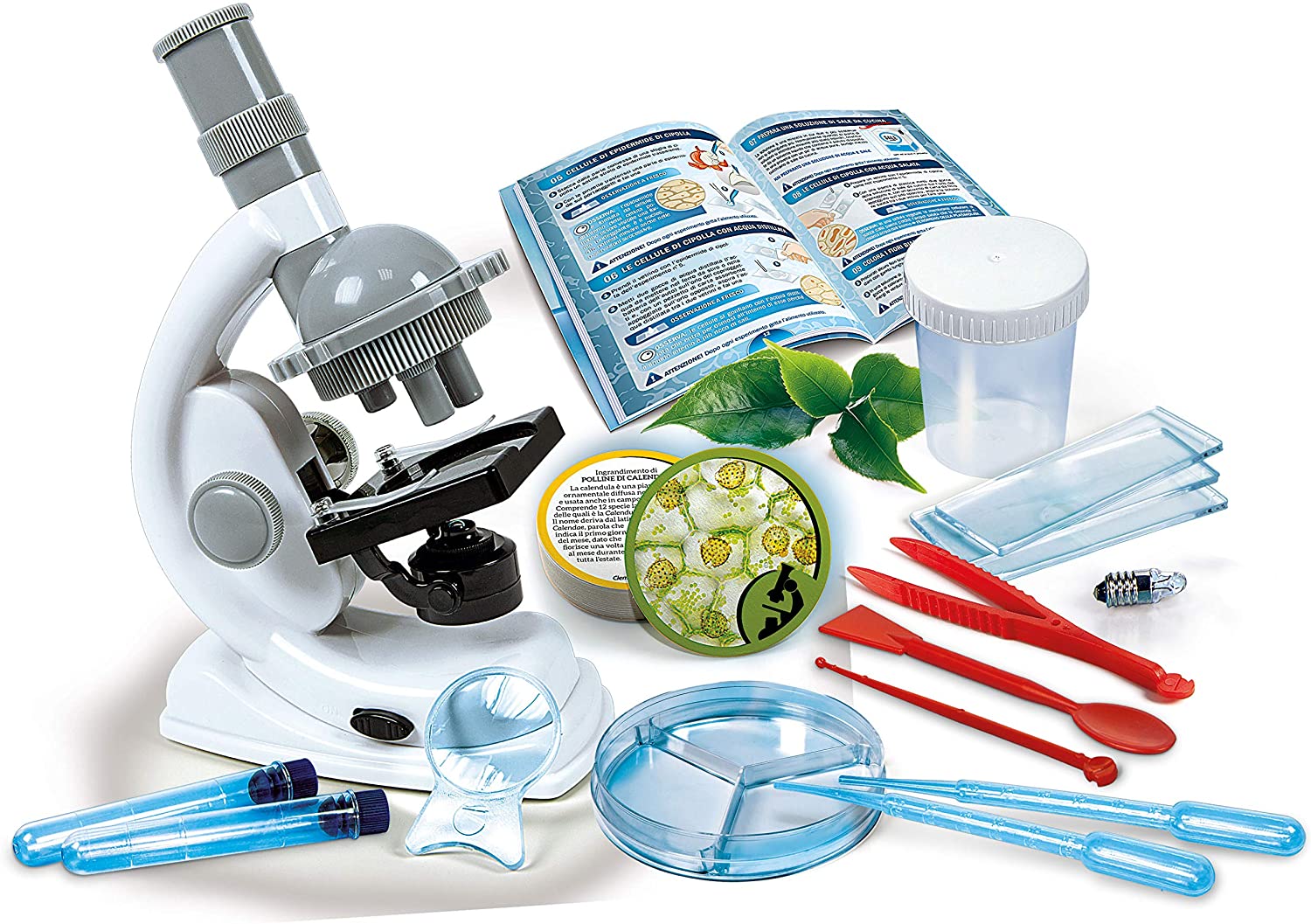Una ricca strumentazione in dotazione con la quale osservare il mondo che ci circonda: vetrini in plastica, bicchierini, pipette e lente di ingrandimento