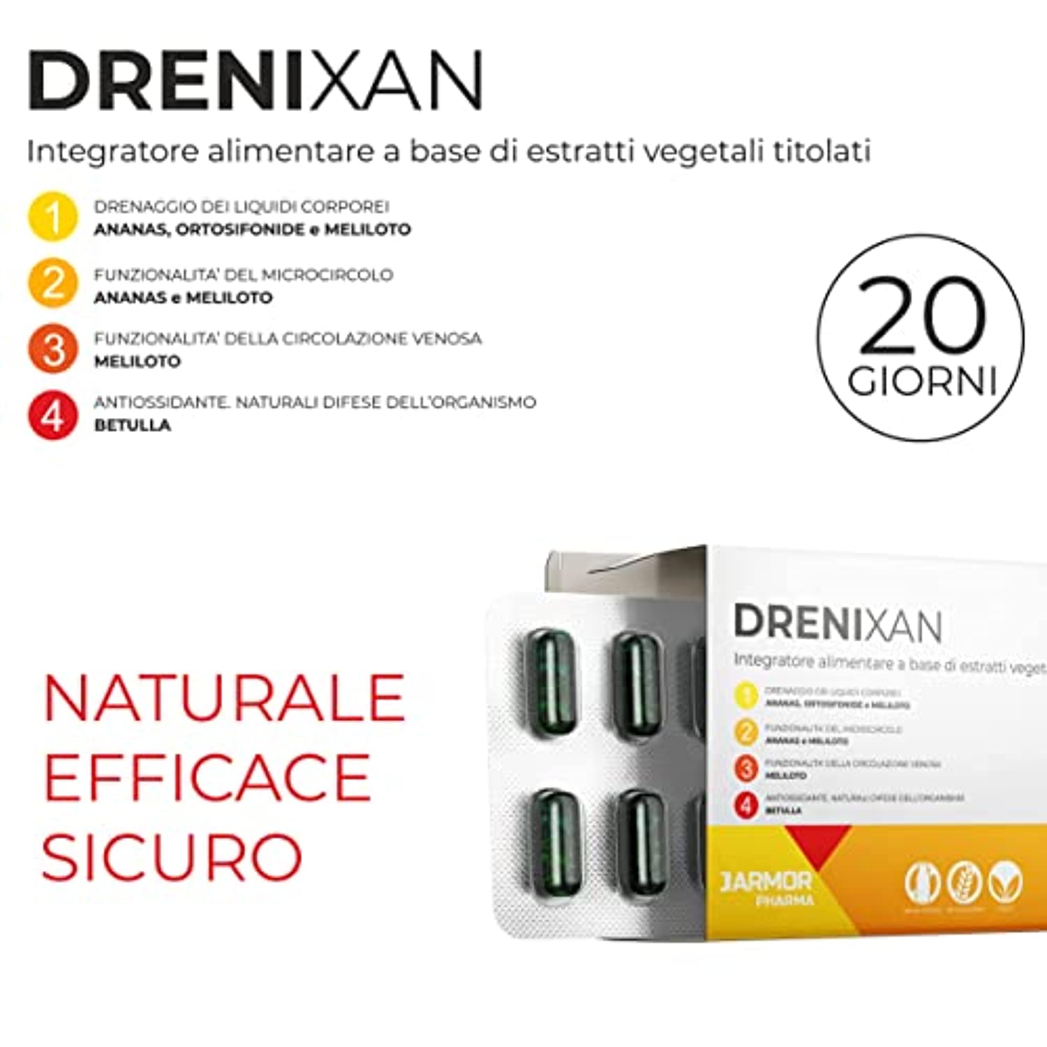 Jarmor Drenixan Integratore Drenante Disintossicante Forte Circolazione Vene Gambe Detox 20 Capsule