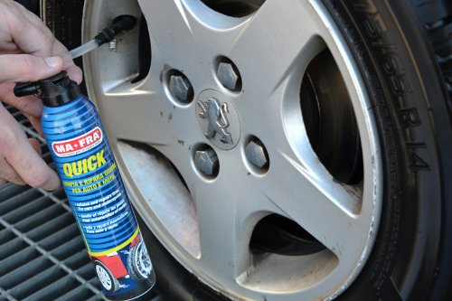 Il prodotto, pratico e veloce da utilizzare, permette di riparare il pneumatico senza dover rimuovere la ruota forata e rischiare di sporcarsi.