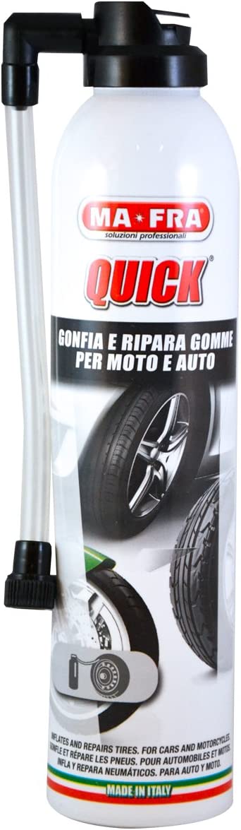 Ma-Fra, Quick, Gonfia e Ripara le Gomme Forate di Auto e Moto, Adatto a Pneumatici con e Senza Camera d'Aria, Formato 300ml