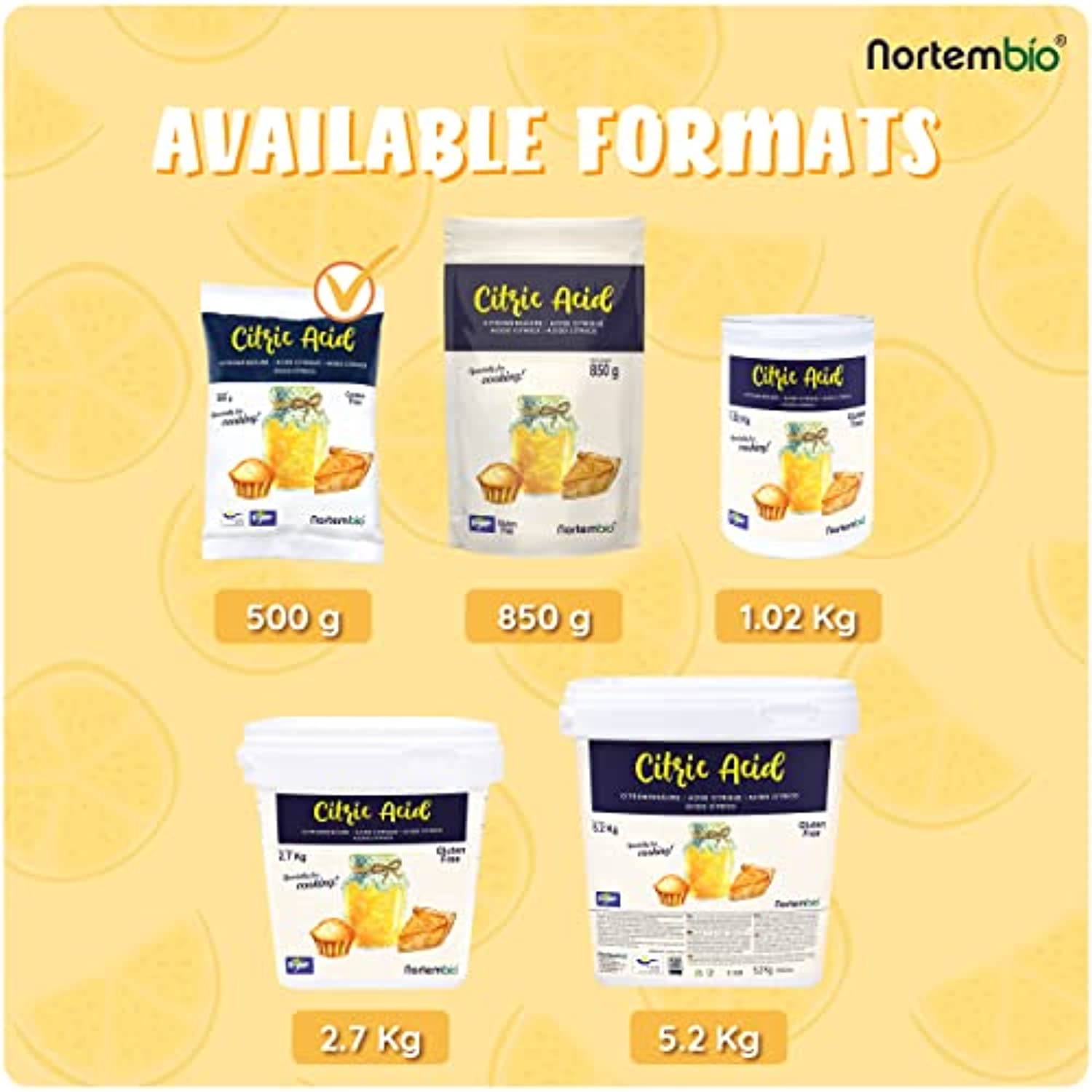 Nortembio Acido Citrico Biologico 500 g. Qualità Alimentare e 100% Puro. Conservante per Pasticceria e Cucina. Acidificante in Polvere per Bevande e Marmellate. E-Book di Ricette Incluso.