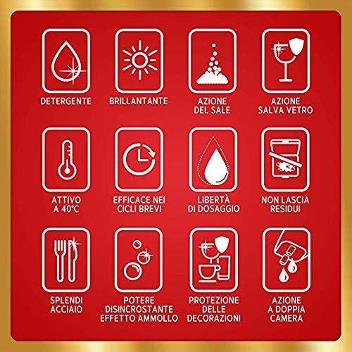 Ottima azione: la formula multifunzione del prodotto lavastoviglie offre un potere pulente adatto grazie alle sue 12 azioni: detergente, brillantante, salva vetro, ecc.