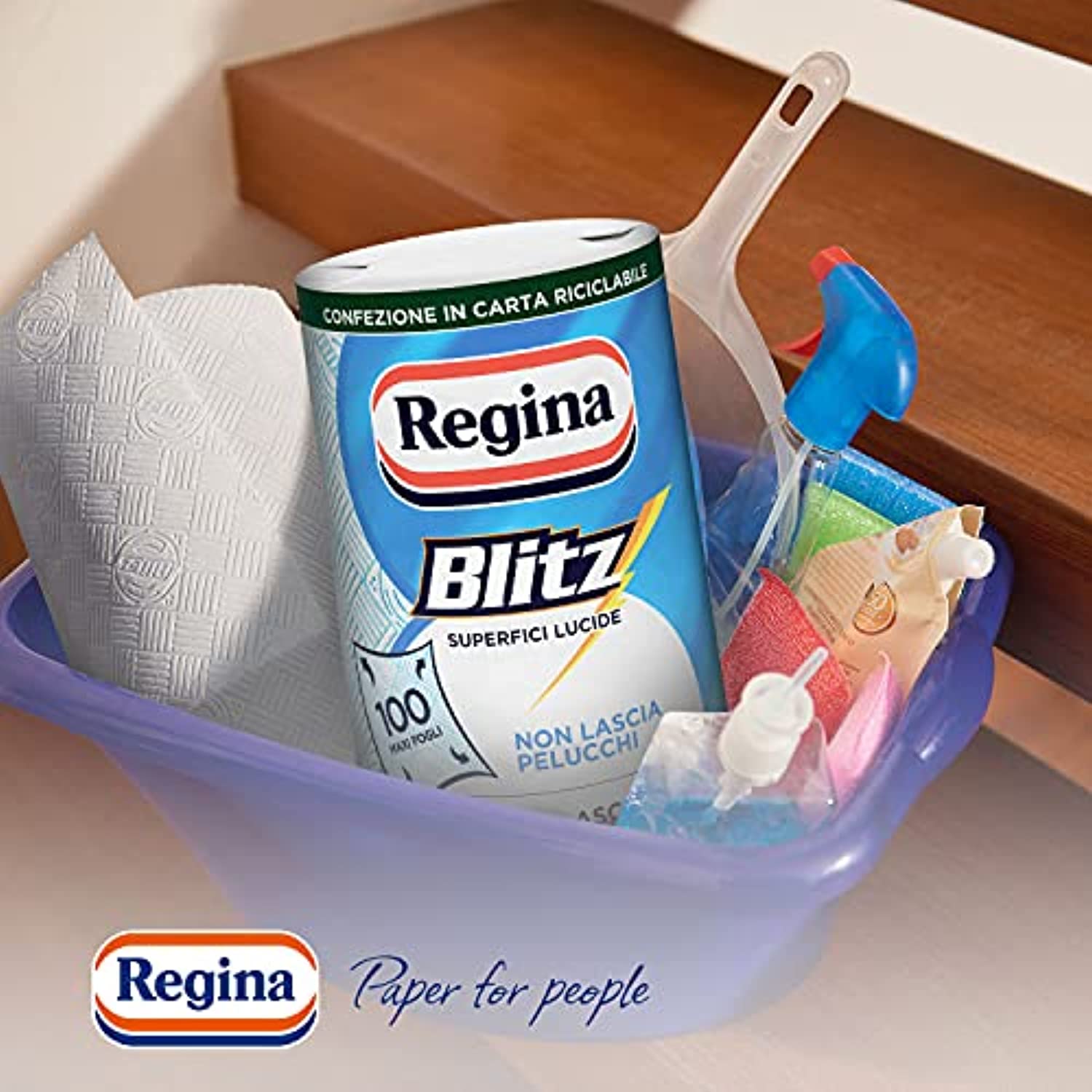 Regina Blitz è la carta casa che grazie ai suoi maxi-fogli a 3 veli e all’unicità della sua trama, non lascia pelucchi e ti consente di pulire velocemente e con efficacia tutte le superfici della casa